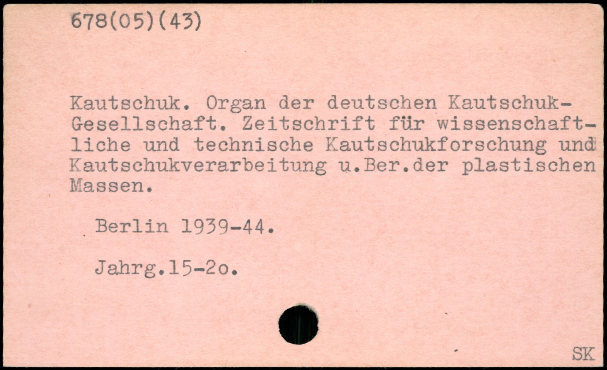 Kautschuk. Organ der deutschen Kautschuk-G-esellschaft. Zeitschrift für wissenschaftliche und technische Kautschukforschung und Kautschukverarbeitung u.Ber.der plastischen Massen.