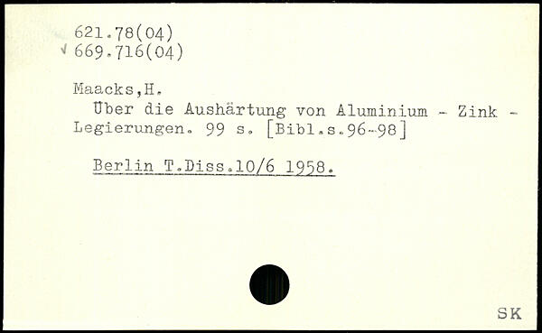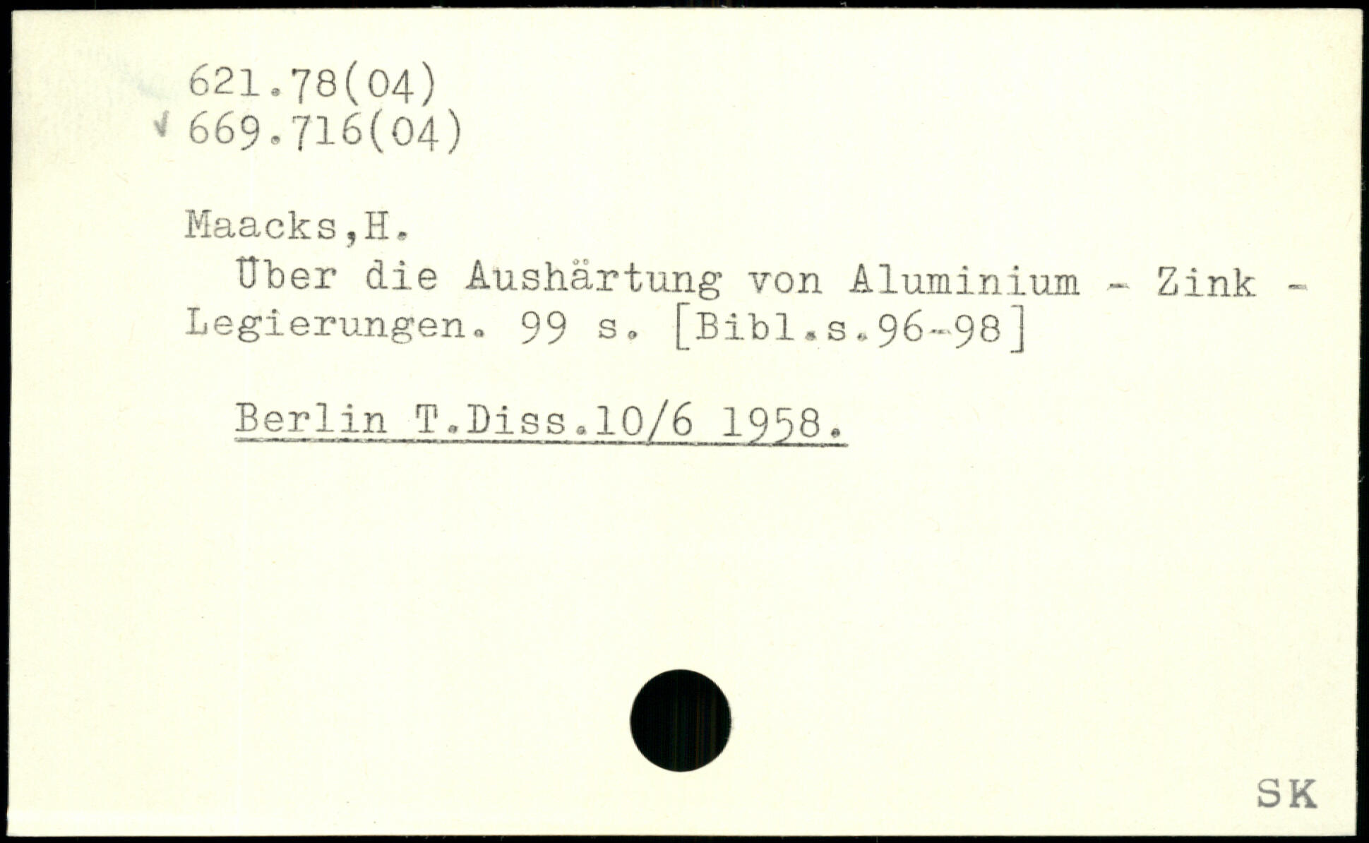 Uber die Aushärtung von Aluminium - Zink -Legierungen.