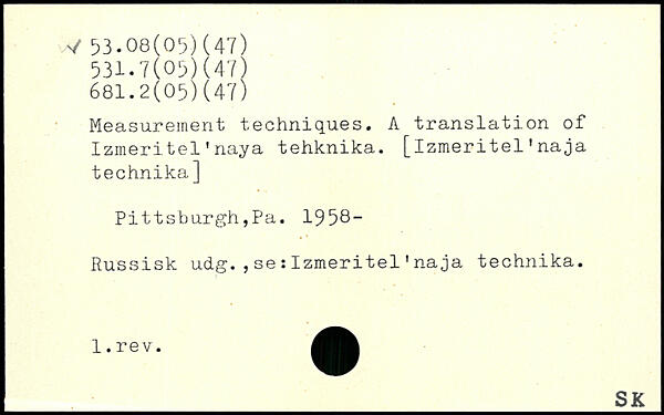 Measurement techniques. A translation of Izmeritel'naya tehknika.