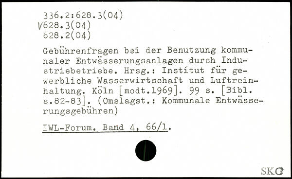 Gebührenfragen bei der Benutzung kommunaler Entwässerungsanlagen durch Industriebetriebe. Hrsg.: Institut für gewerbliche Wasserwirtschaft und Luftreinhaltung. Köln [modt.1969].