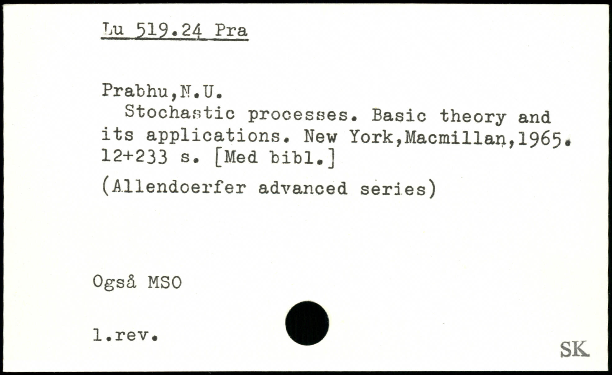 Stochastic processes. Basic theory and its applications.