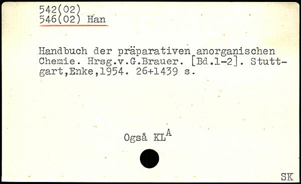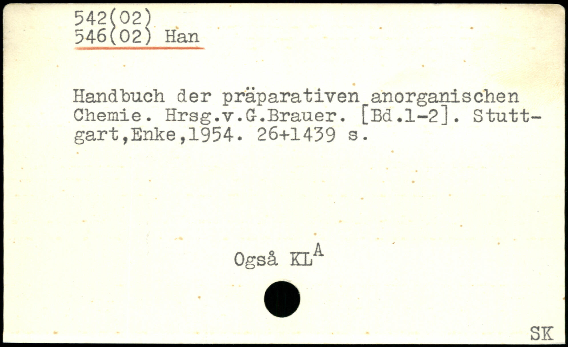 Handtuch der präparativen anorganischen Chemie. Hrsg.v.G-.Brauer.