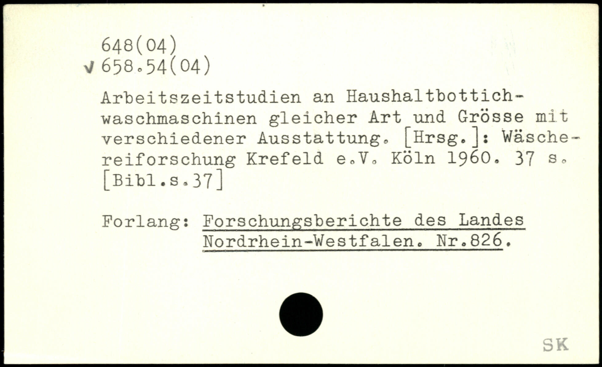 Arbeitszeitstudien an Haushaltbottichwaschmaschinen gleicher Art und Grösse mit verschiedener Ausstattung, [Hrsg.]: Wäschereiforschung Krefeld e.V