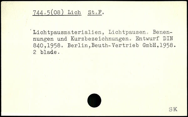 Lichtpausmaterialien, Lichtpausen, Benennungen und Kurzbezeichnungen, Entwurf DIN 840,1958.