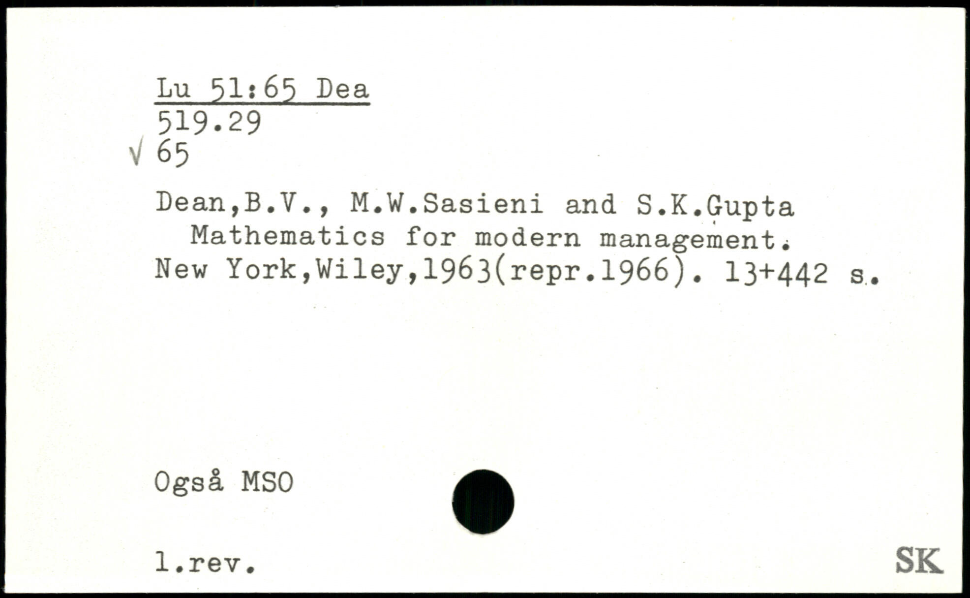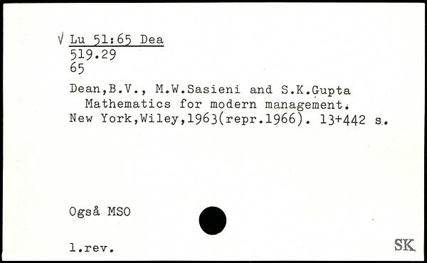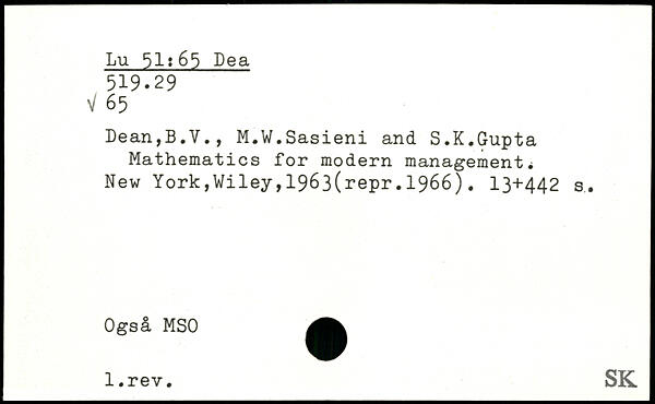 Dean,B.V., M.W.Sasieni and S.K.Gupta Mathematics for modern management.