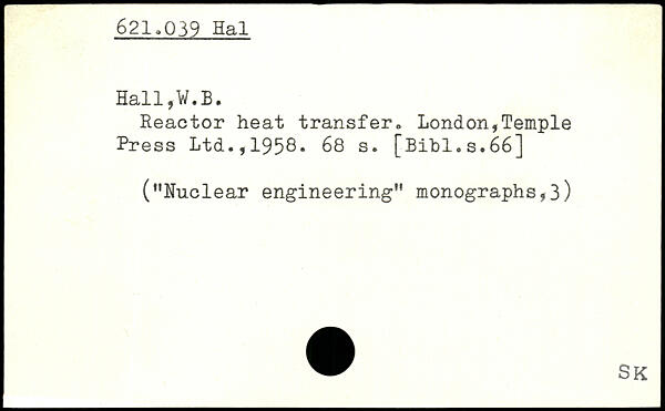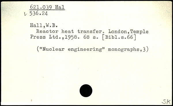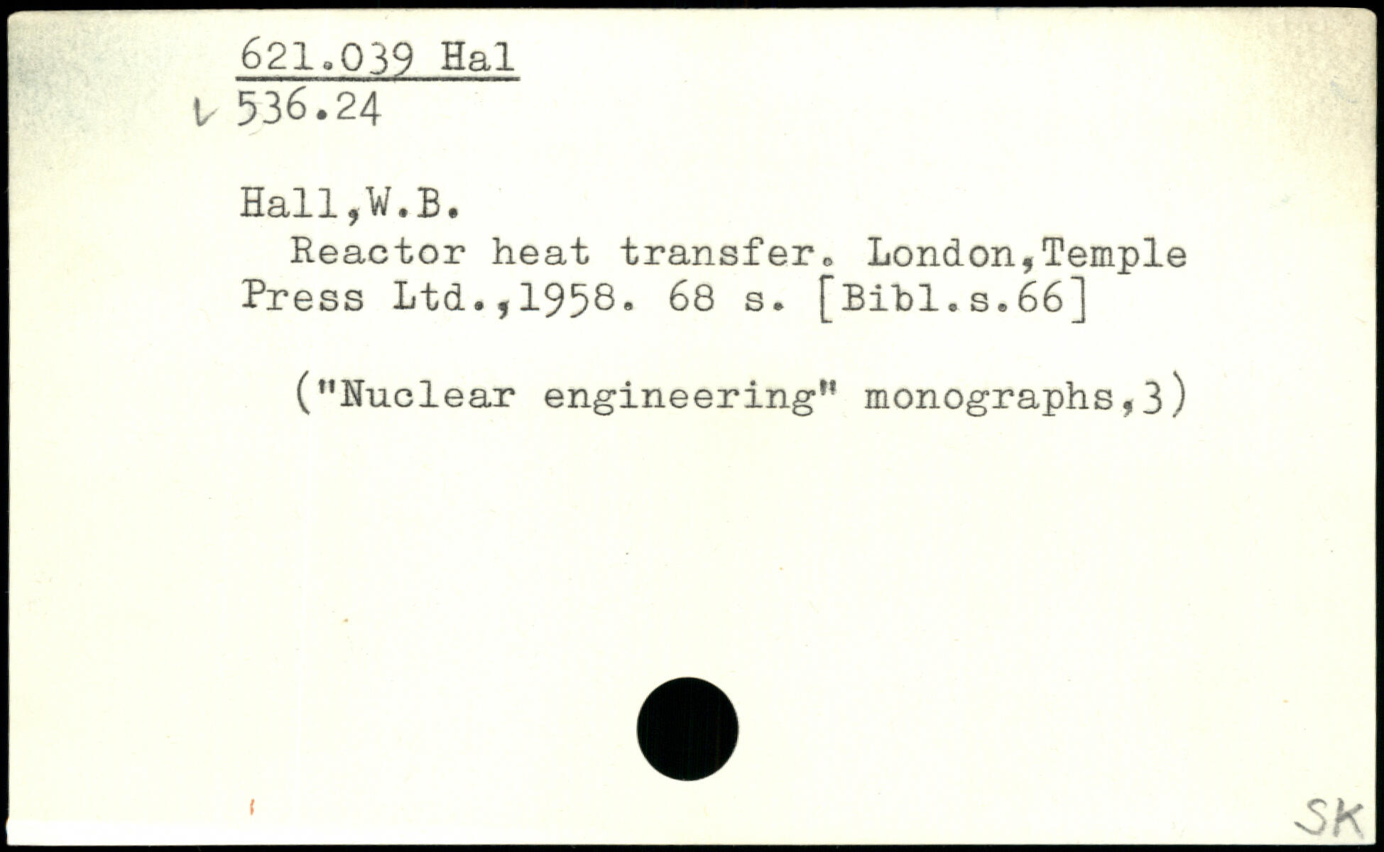 Reactor heat transfer, London,Temple Press Ltd.,1958, 68 s. [Bibl.s.66]