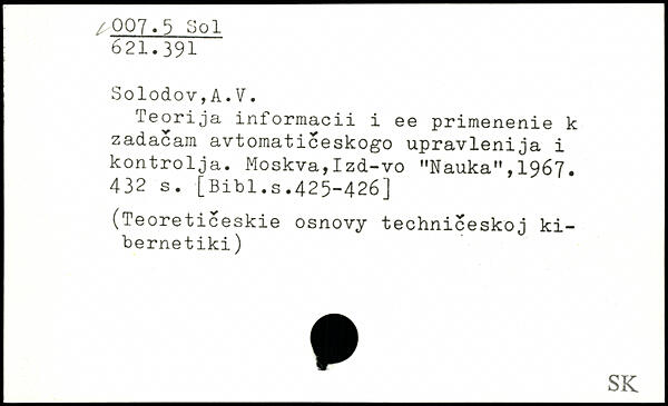 Teorija informacii i ee primenenie k zadacam avtomaticeskogo upravlenija i kontrolja. Moskva,Izd-vo "Nauka",1967.