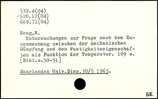Untersuchungen zur Frage nach dem Zusammenhang zwischen der mechanischen Dämpfung und den Festigkeitseigenschaf-ten als Funktion der Temperatur.