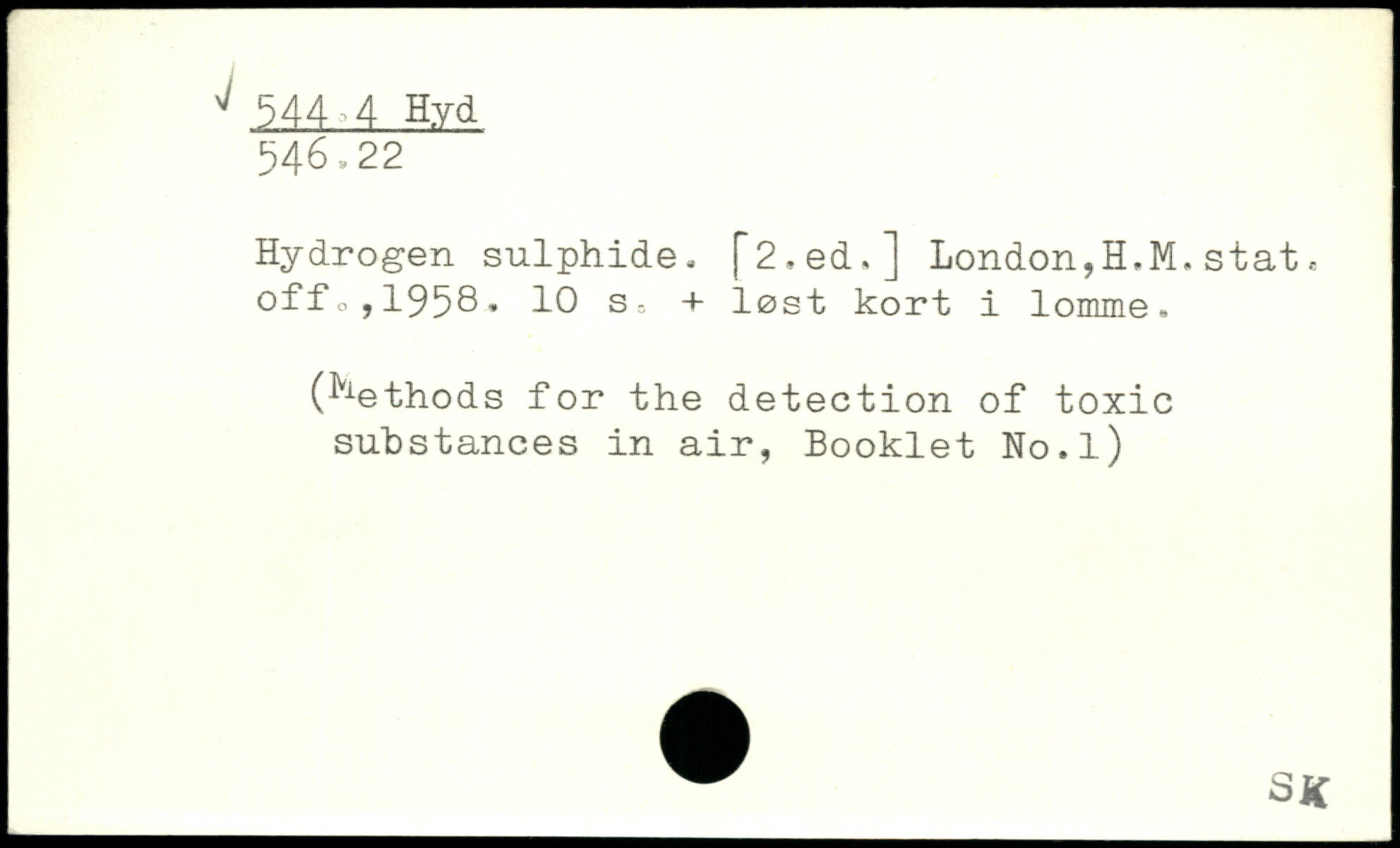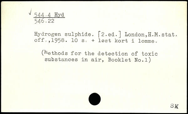 Hydrogen sulphide, |~2,ed,] London,H,M. stat, offo,1958’