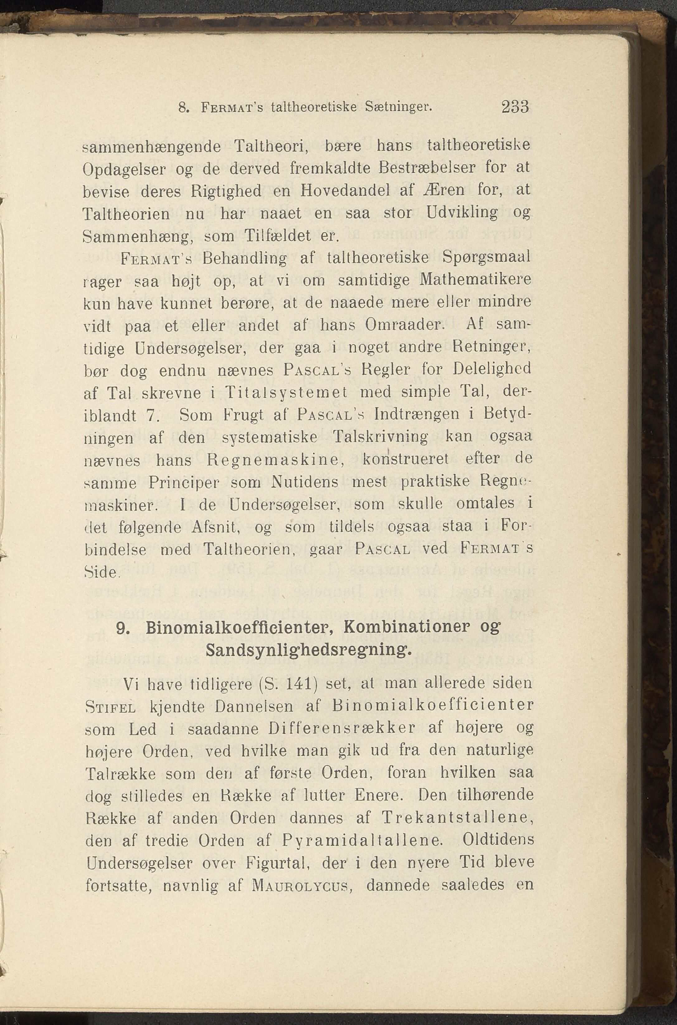 bindelse med Taltheorien, gaar Pascal ved Fermat s