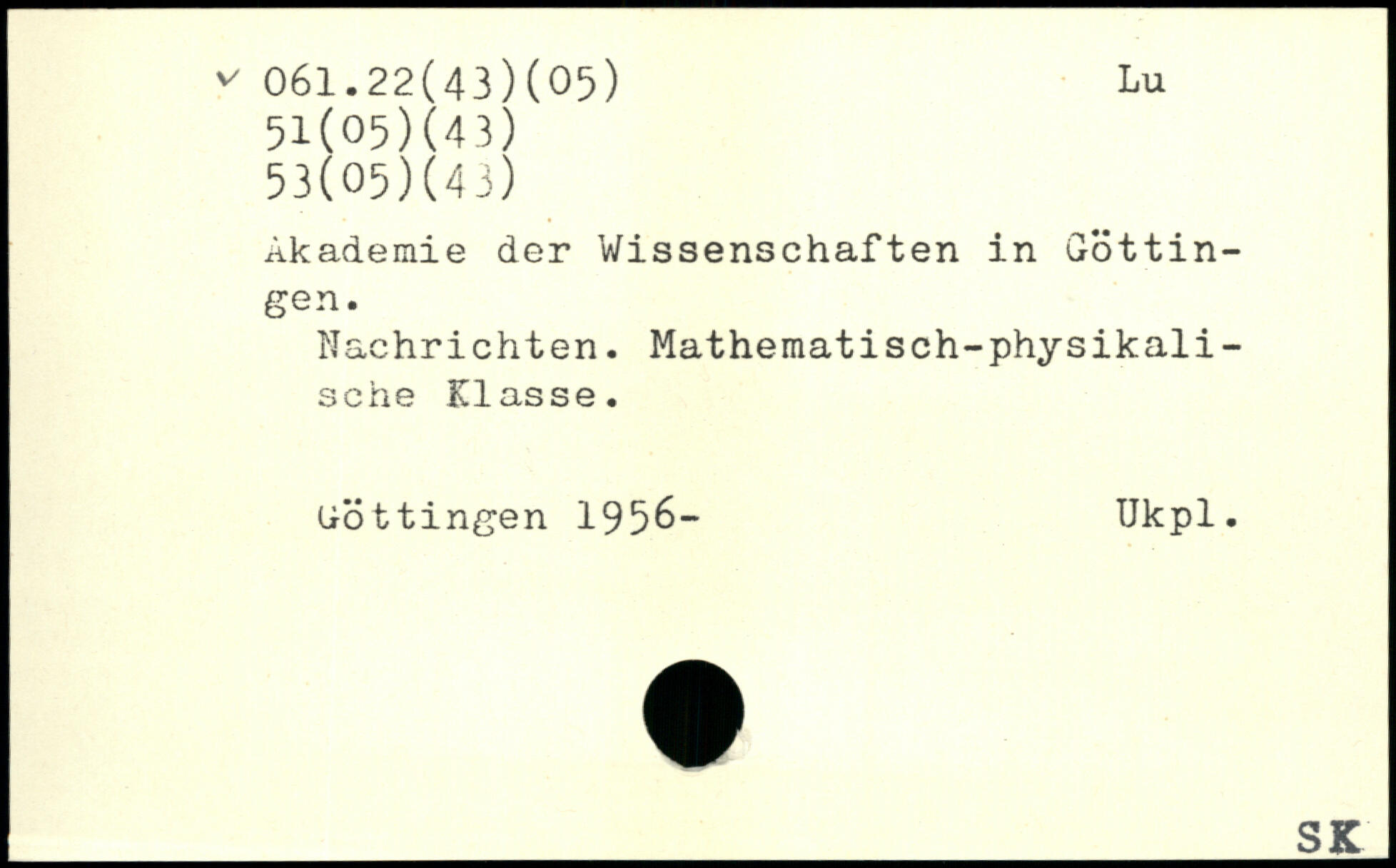 Akademie der Wissenschaften in Göttingen. Nachrichten. Mathematisch-physikalische Klasse. uöttingen 1956- Ukpl.
