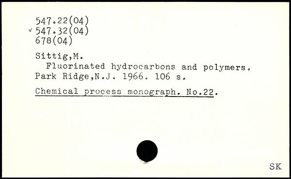 Fluorinated hydrocarbons and polymers. Park Ridge,N.J. 1966