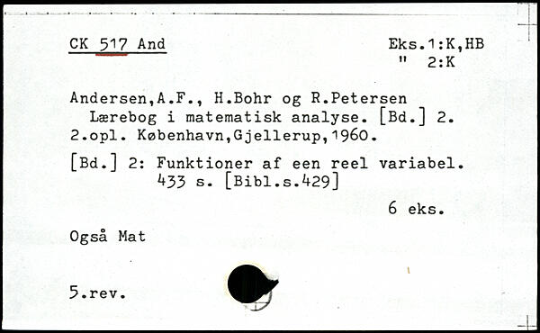 Lærebog i matematisk analyse. [Bd.] 2. 2.opl.