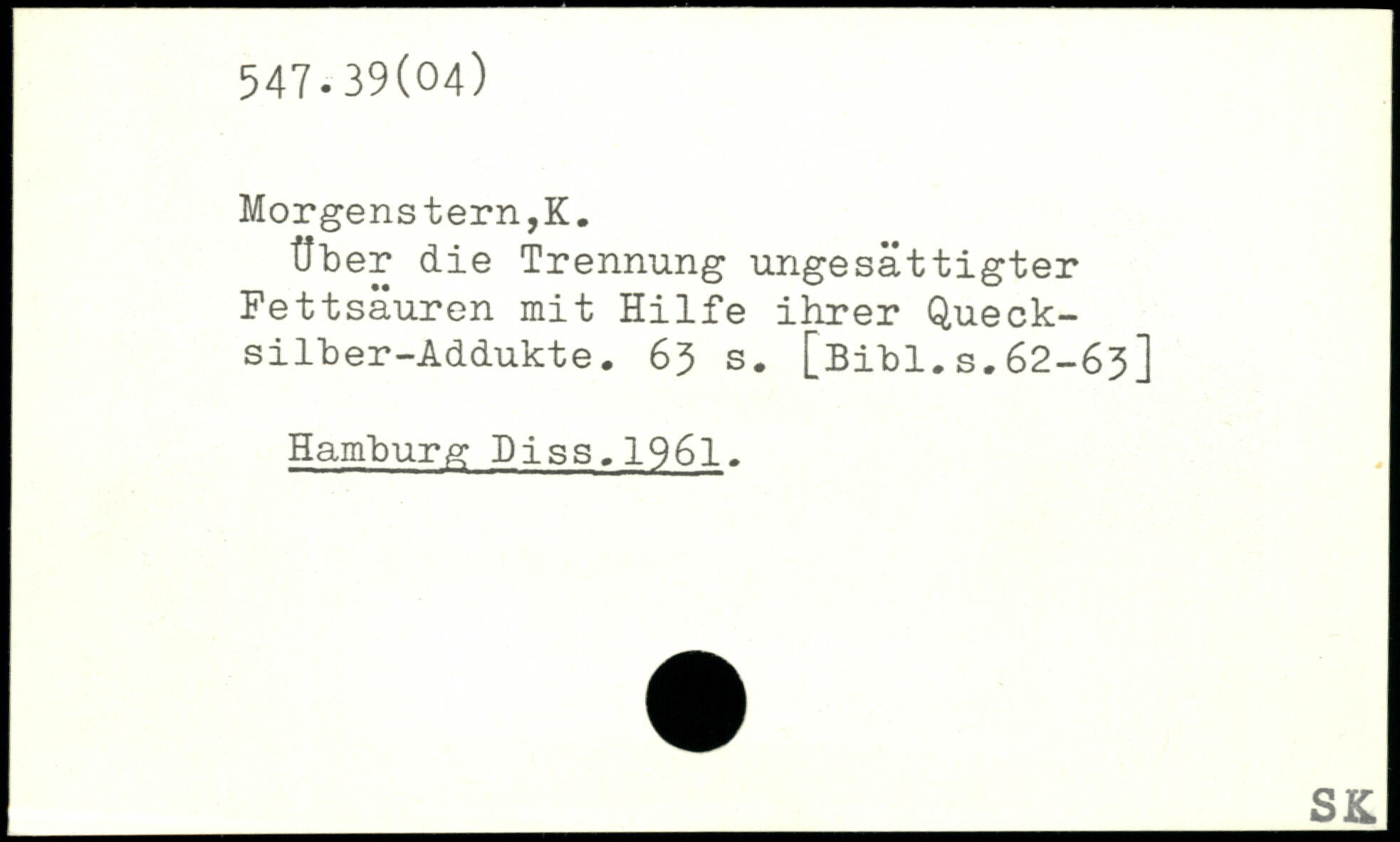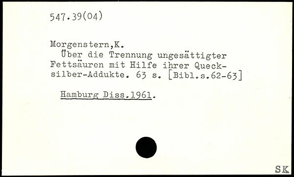 Über die Trennung ungesättigter Fettsäuren mit Hilfe ihrer Queck-silber-Addukte. 6$ s.