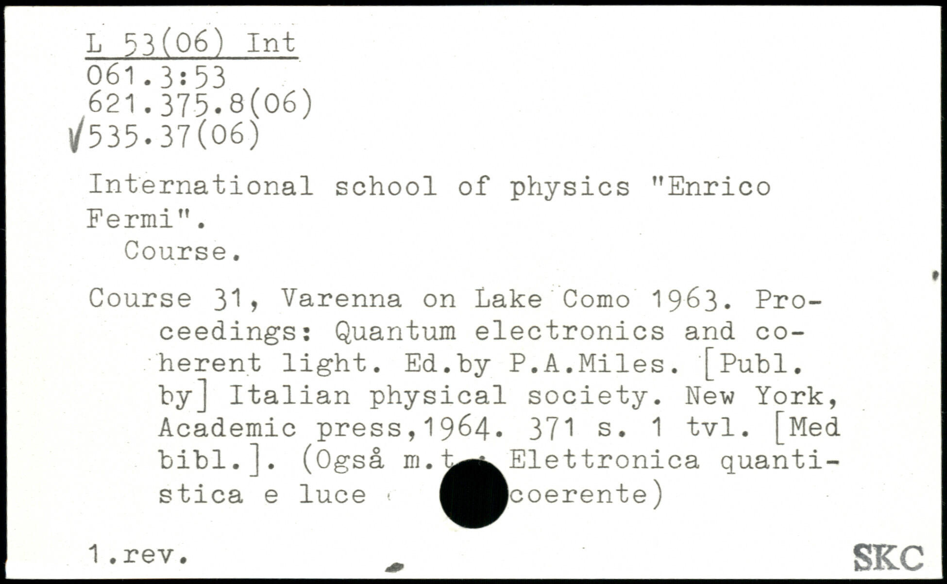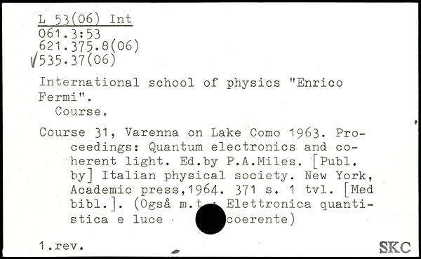 International school of physics "Enrico Fermi". Course. Course 3.1 > Varenna on Lake Como 1963. Proceedings: Quantum electronics and coherent light. Ed.by P.A.Miles.