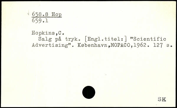 Salg på tryk. [Engl.titel:] ”Scientific Advertising”. København,M0PAC0,1962.
