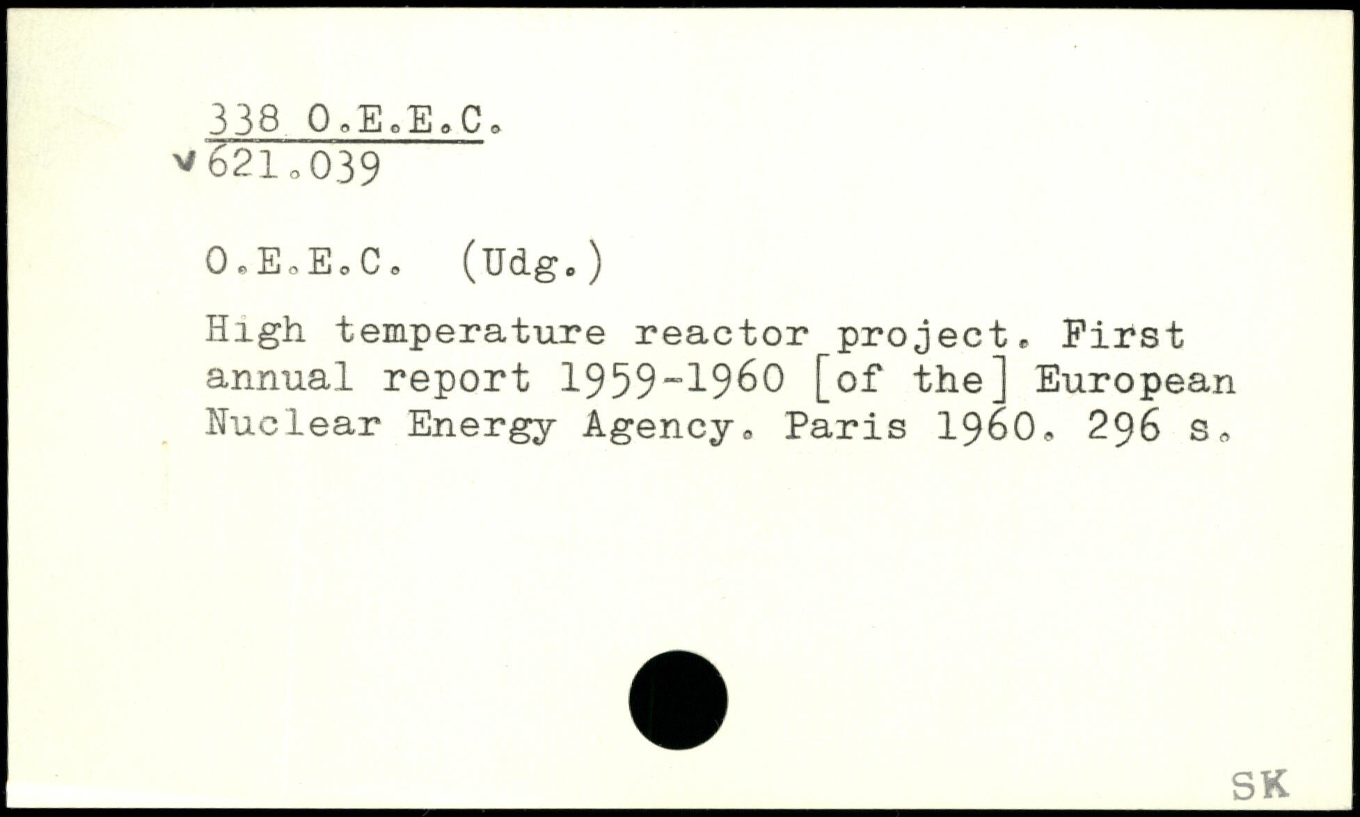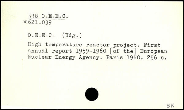 O.EoEoC. (Udg.) High temperature reactor project. First annual report 1959“1960 [of the] European Nuclear Energy Agency
