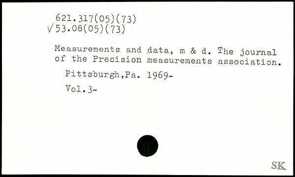 Measurements and. ,d-3-ta, m & d., The journal of the Precision measurements association. Pittsburgh,Pa. 1969-
