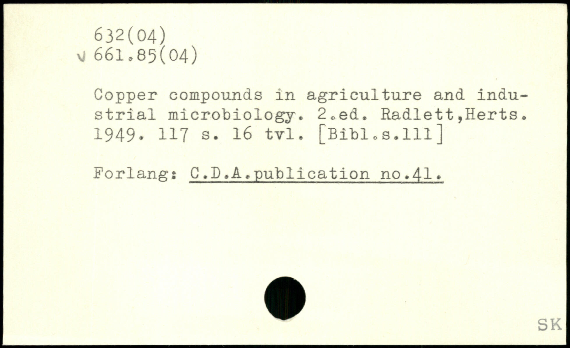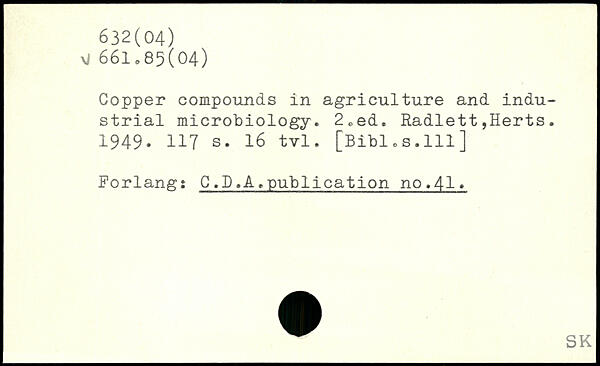 Copper compounds in agriculture and industrial microbiology. 2,ed. Radlett,Herts. 1949.