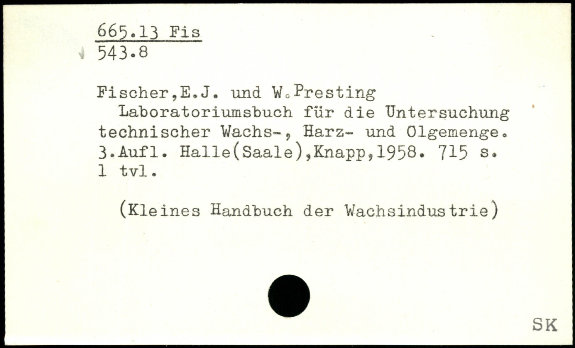 Laboratoriumsbuch für die Untersuchung technischer Vachs-, Harz- und 01gemenge<
