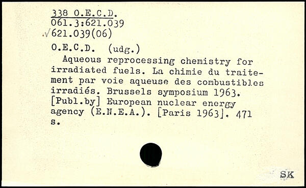 Aqueous reprocessing chemistry for irradiated fuels. La chimie du traitement par voie aqueuse des combustibles irradiés. Brussels symposium 1963.