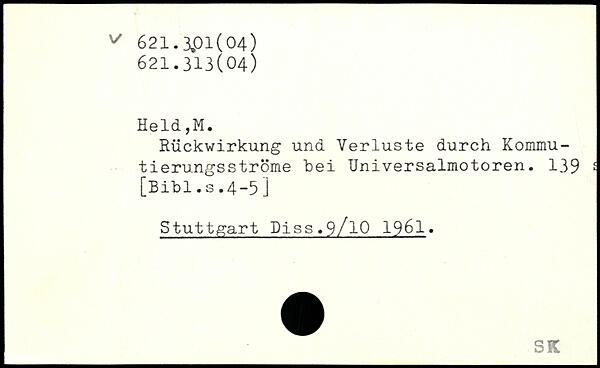 Rückwirkung und Verluste durch Kominu-tierungsströme bei Universalmotoren. 139 £