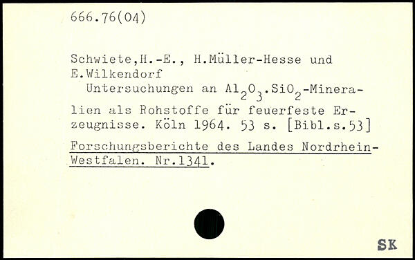 Schwiete ,11.-E. , H.Muller-Hesse und E.Wilkendorf Untersuchungen an Al^O^.SiO^-Minera- lien als Rohstoffe für feuerfeste Erzeugnisse.