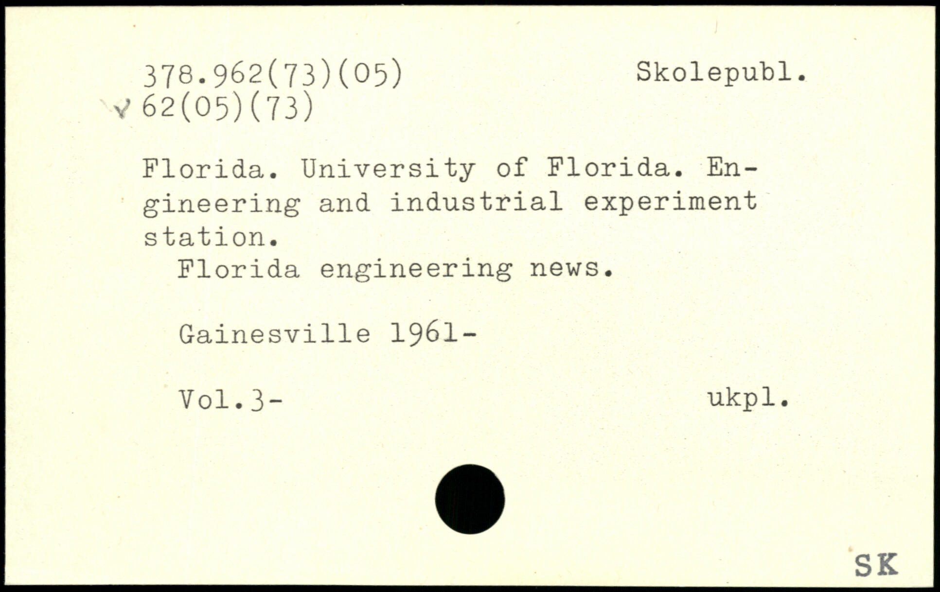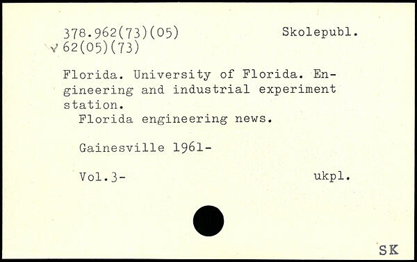 Florida. University of Florida. Engineering and industrial experiment station. Florida engineering news. Gainesville 1961-