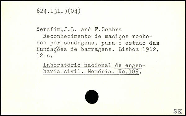 Reconhecimento de maciços rocho-sos por sondagens, para o estudo das fundaçoes de barragens. Lisboa 1962.