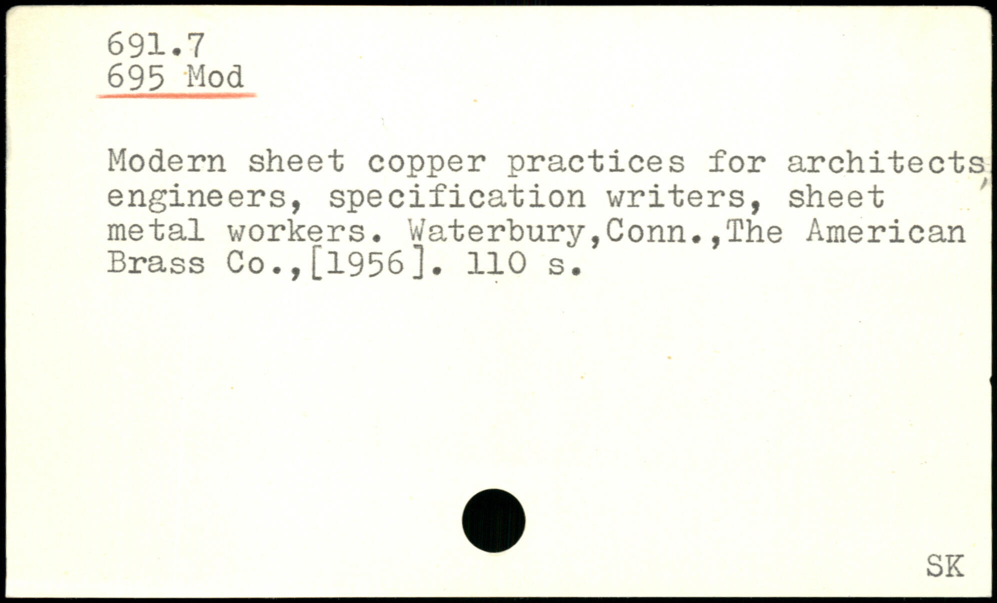 Modern sheet copper practices for architects engineers, specification writers, sheet metal workers.