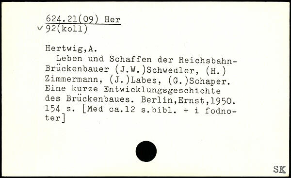 Leben und Schaffen der Reichsbahn-Brückenbauer (J.W.)Schwedler, (H.) Zimmermann, (j.)Labes, (G.)Schaper. Eine kurze Entwicklungsgeschichte des Brückenbaues.