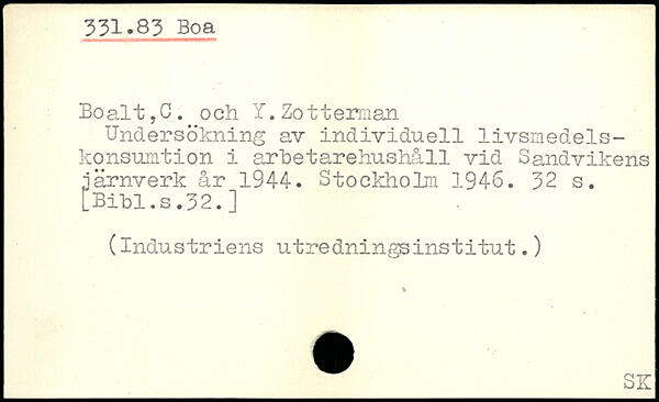 Undersökning av individuell livsmedels-konsumtion i arhetarehushåll vid Sandvikens -järnverk år 194-4.