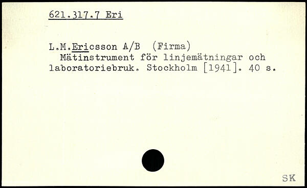 L.M.Ericsson A/B (Firma) Mätinstrument för linjemätningar och lahoratoriebruk. Stockholm