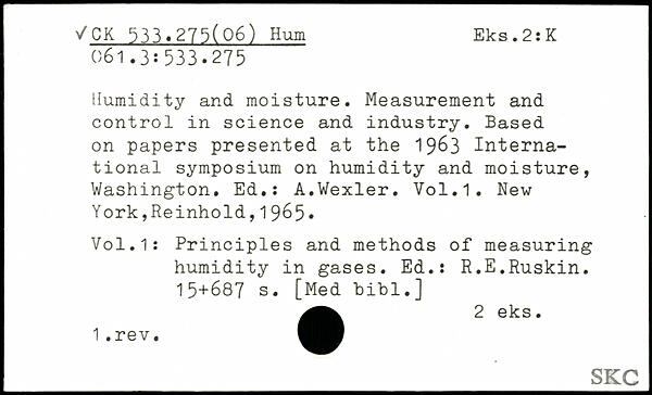 Humidity and moisture. Measurement and control in science and industry. Based on papers presented at the 1963 International symposium on humidity and moisture, Washington. Ed.: A.Wexler.