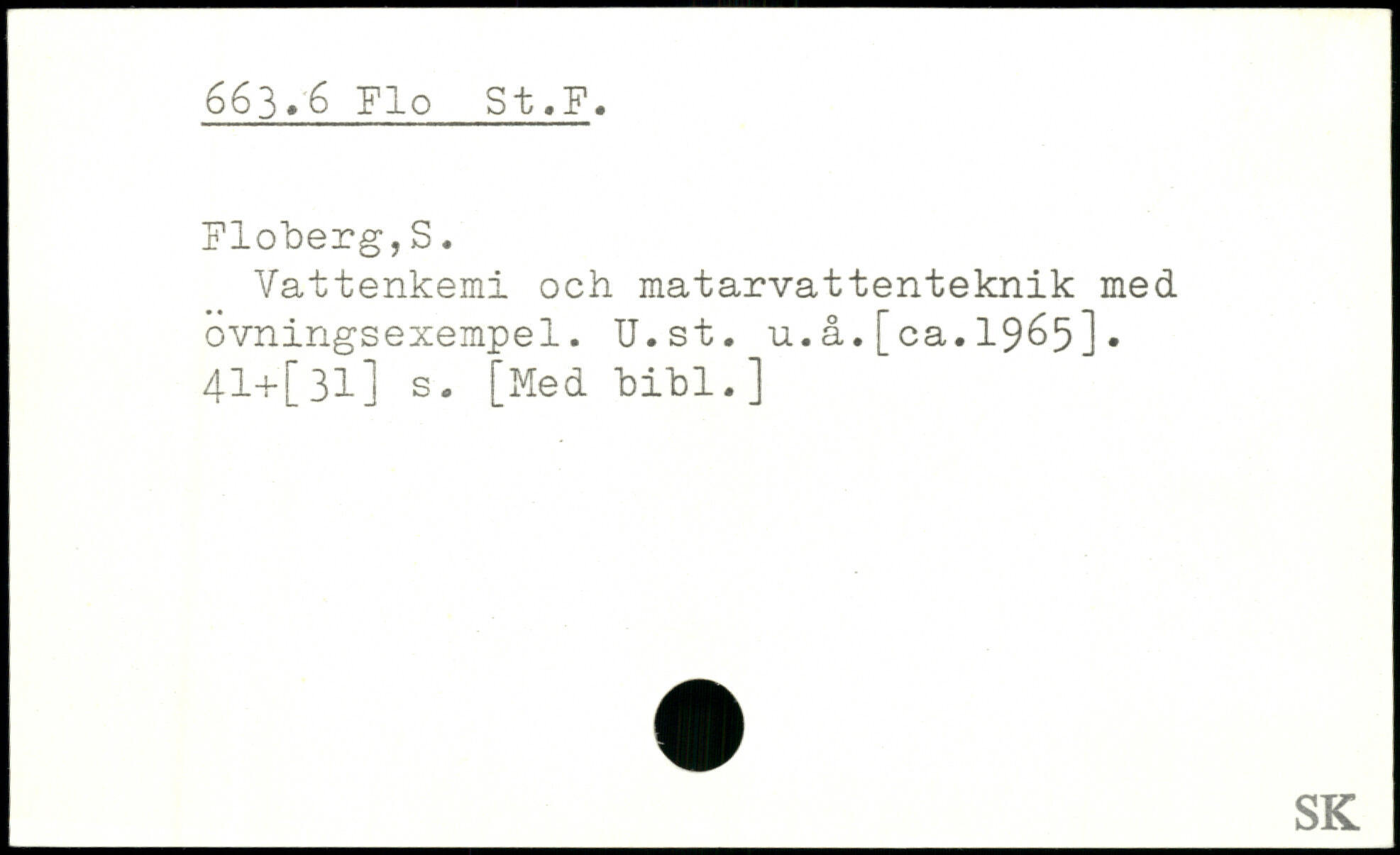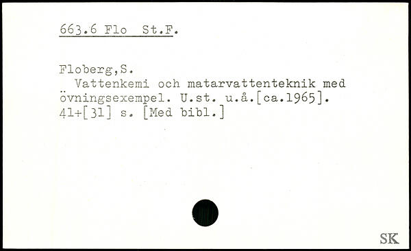 Vattenkemi och matarvattenteknik med övningsexempel. U.st. u.å.[ca.1965]. 41+[3l] s. [Med bibi.]