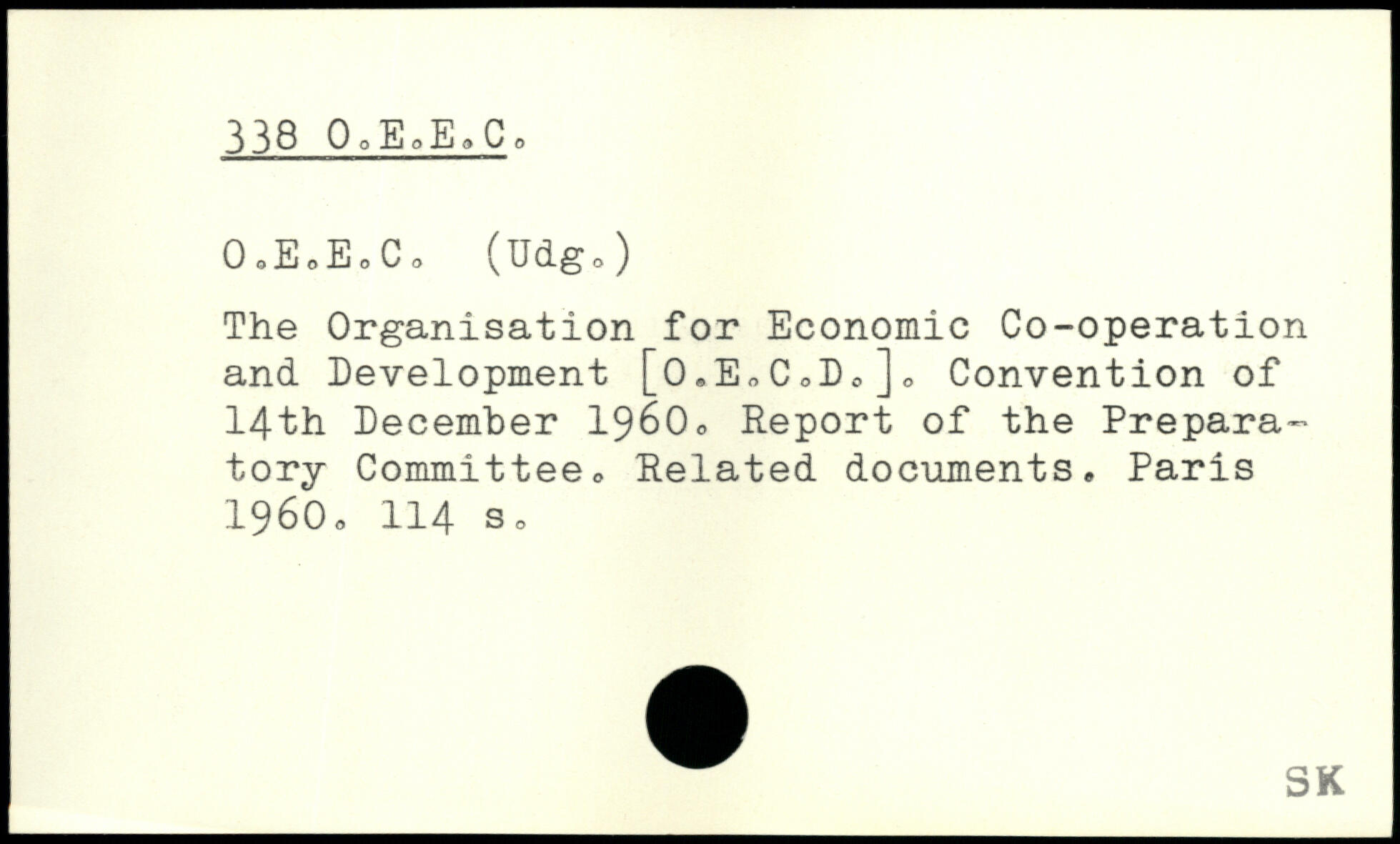 The Organisation for Economie Co-operation and Development [o.E.C.Do]. Convention of 14th December 19600 Report of the Preparatory Committeeo Related documents.
