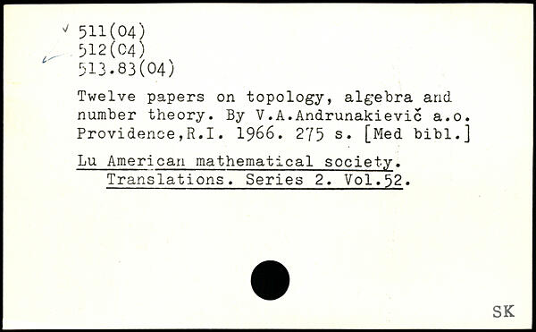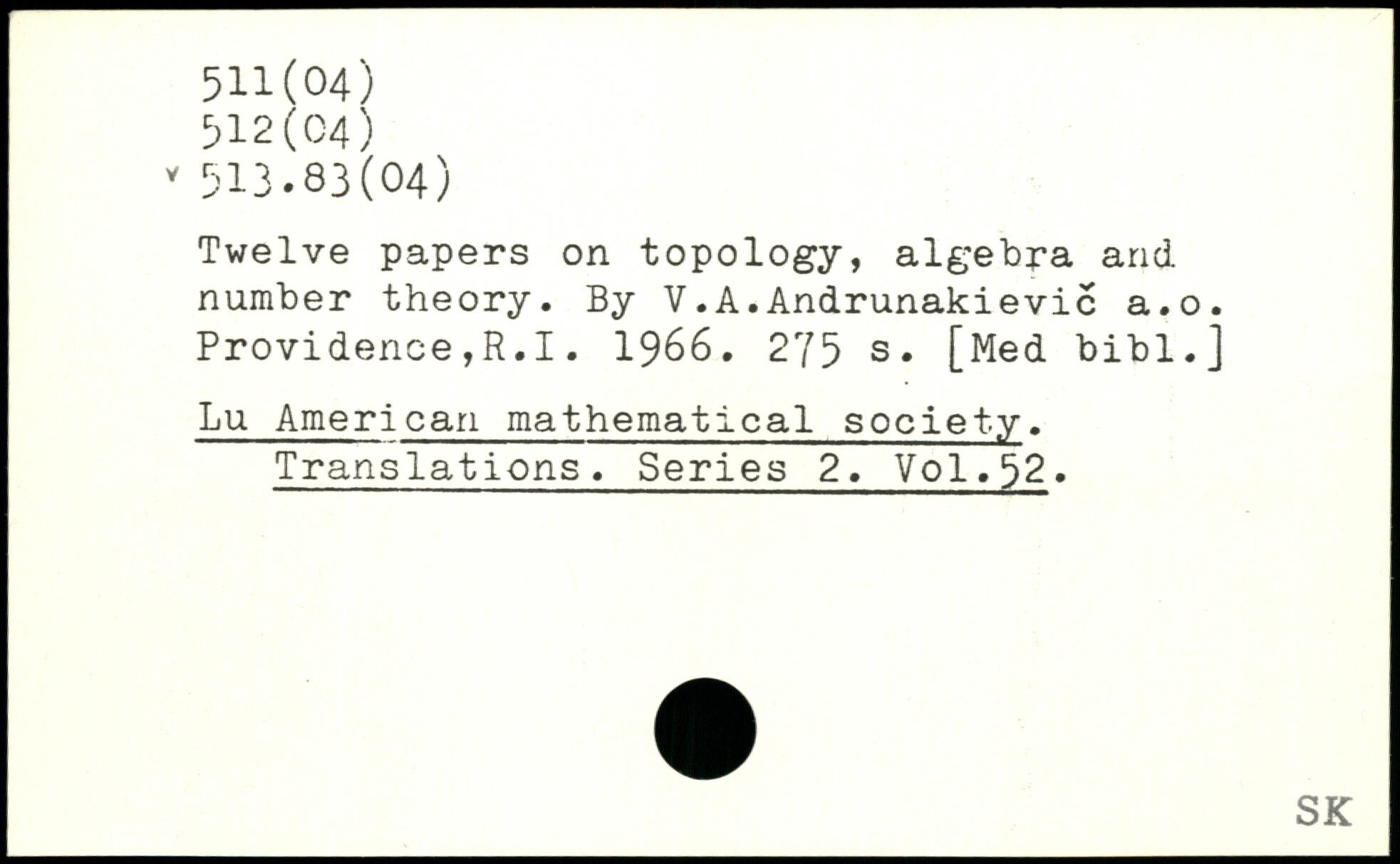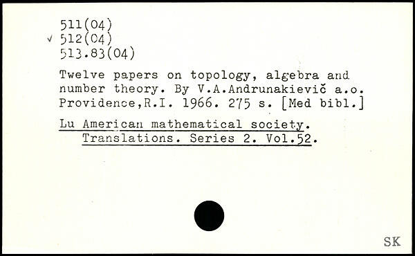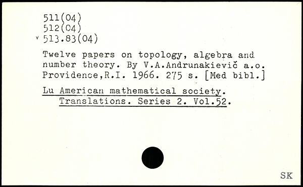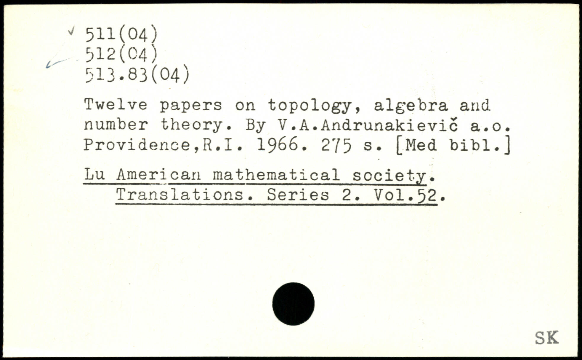 Twelve papers on topology, algebra and number theory. By V.A.Andrunakievic a.o. Providence,R.I. 1966