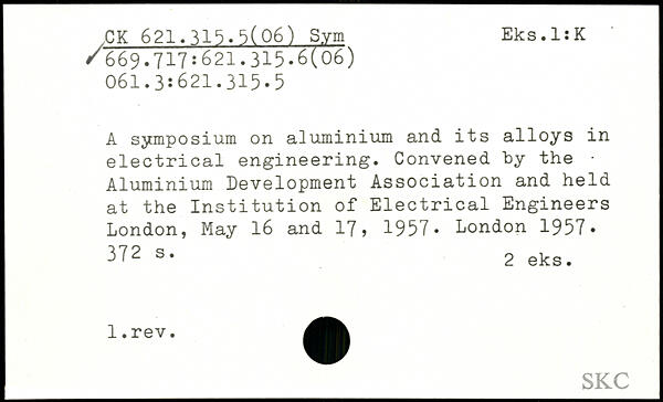A symposium on aluminium and its alloys in electrical engineering. Convened by the Aluminium Development Association and held at the Institution of Electrical Engineers London, May 16 and 17, 1957.