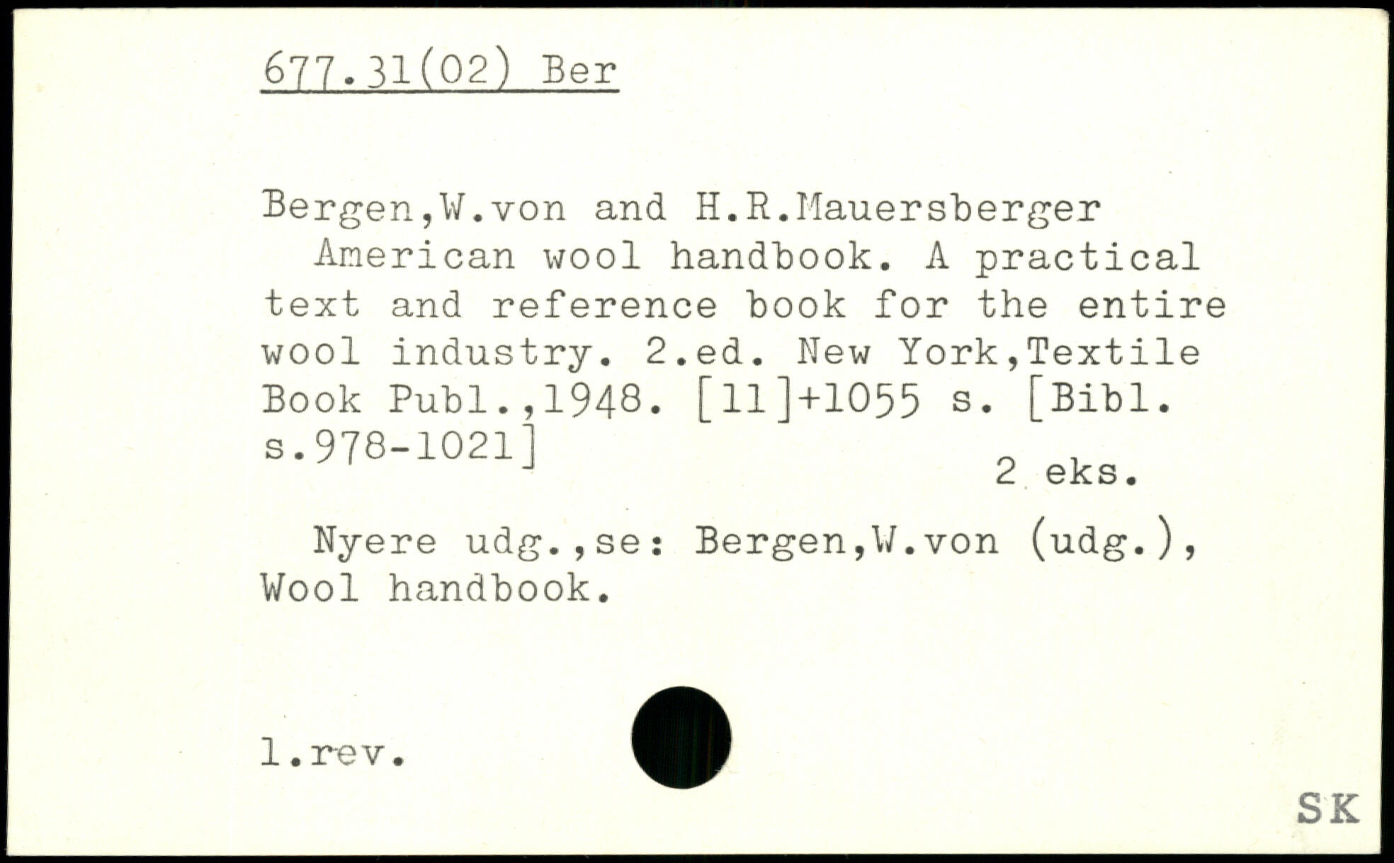 Bergen,W.von and H.R.Hauersberger American wool handbook. A practical text and reference book for the entire wool industry. 2,ed.