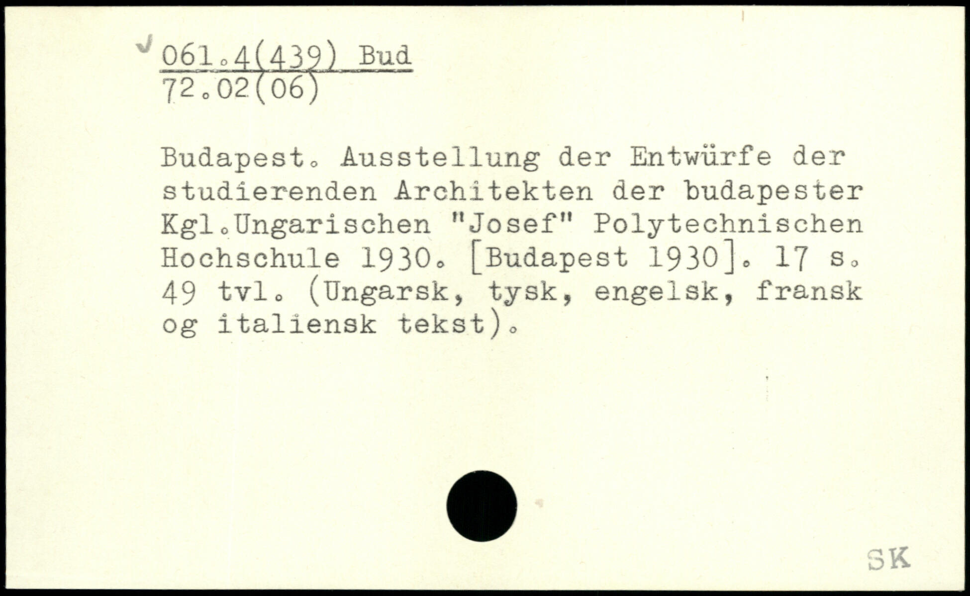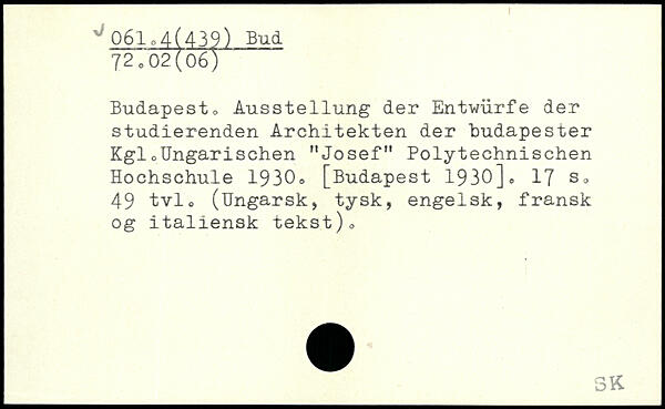 Budapest, Ausstellung der Entwürfe der studierenden Architekten der hudapester Kgl,Ungarischen "Josef" Polytechnischen Hochschule 1930