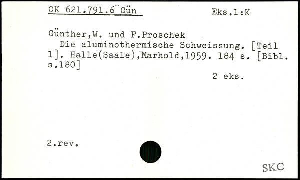 Die aluminothermische Schweissung. [Teil 1]. Halle (Saale) ,'Marhold, 1959.