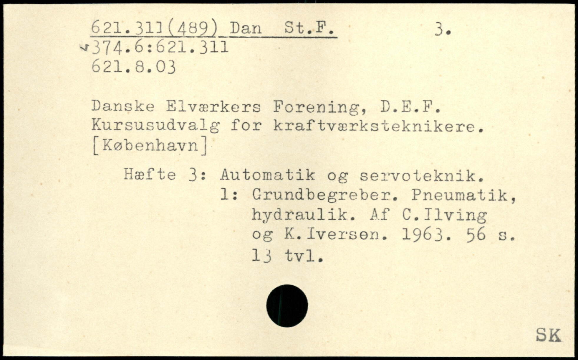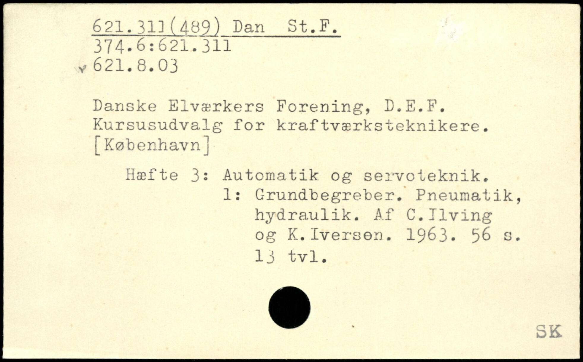 Danske Elværkers Forening, D.E.F. Kursusudvalg for kraftværksteknikere.
