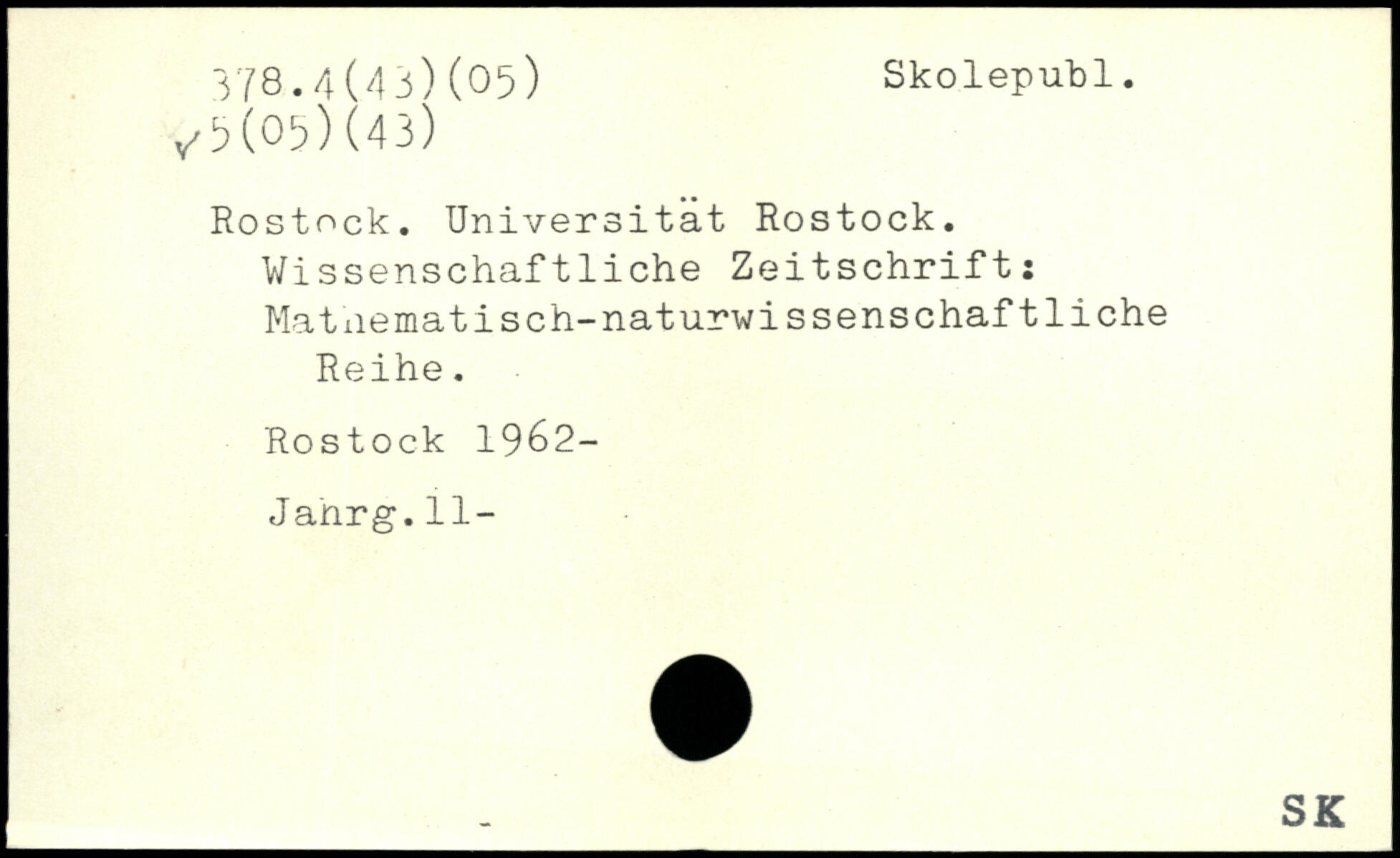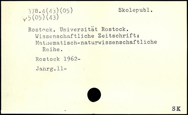 Rostock. Universität Rostock. Wissenschaftliche Zeitschrift: Mat iiemati sc h-naturwissenschaf t liehe Reihe. Rostock 1962-Jahrg.11-
