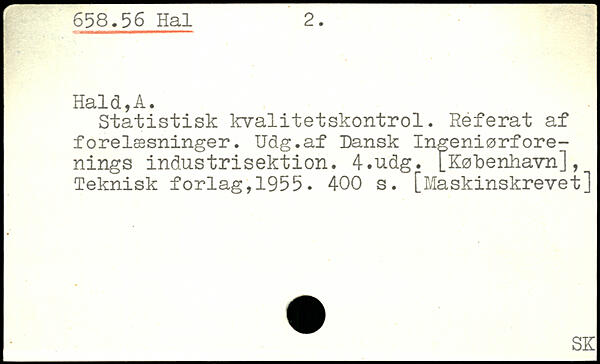 Statistisk kvalitetskontrol. Referat af forelæsninger. Udg.af Dansk Ingeniørfore-nings industrisektion.