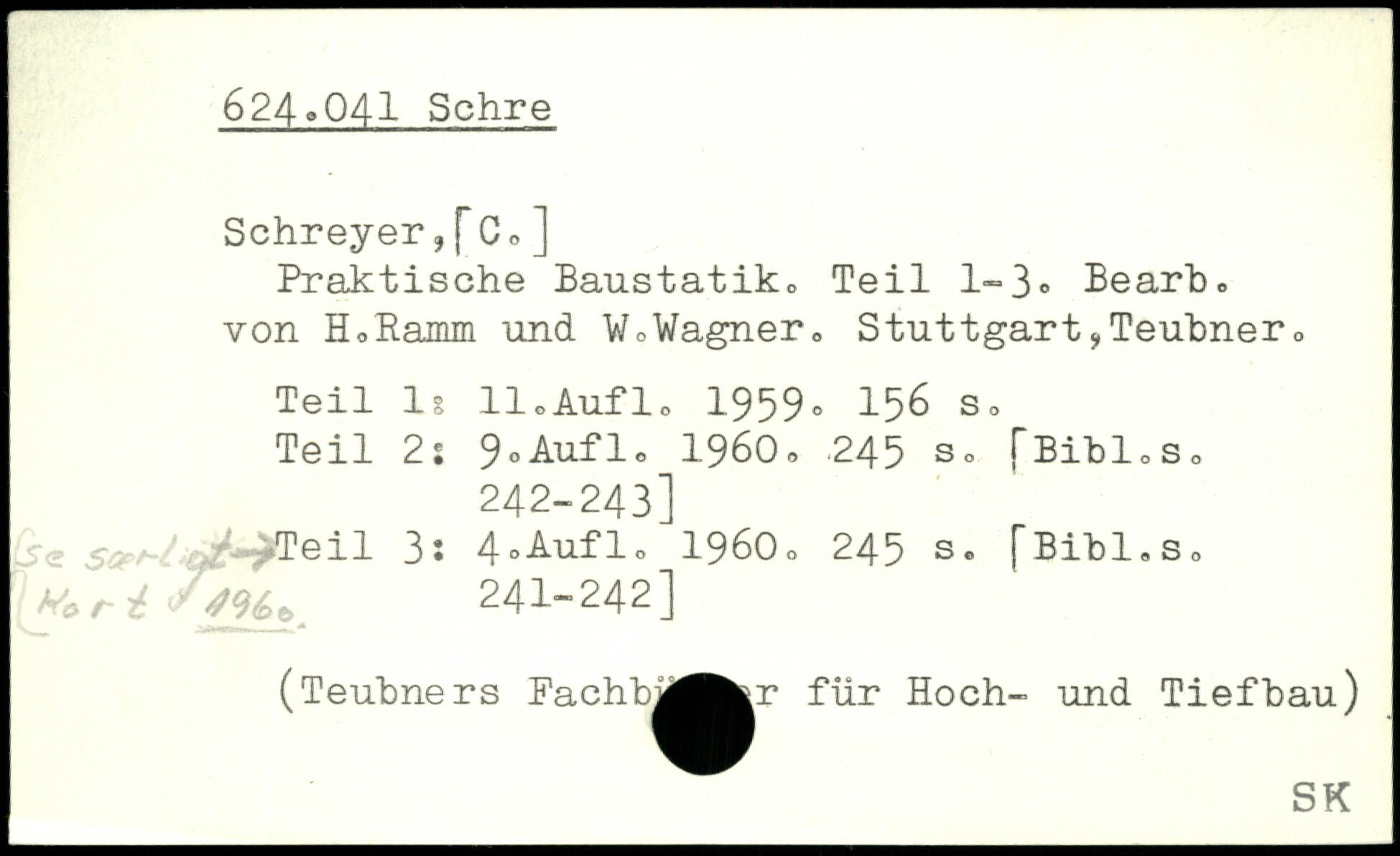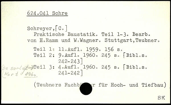 Praktische Baustatiko Teil 1-3, Bearb, von HoRamm und WoWagner. Stuttgart?Teubner0 Teil lg 110Auf1o 1959