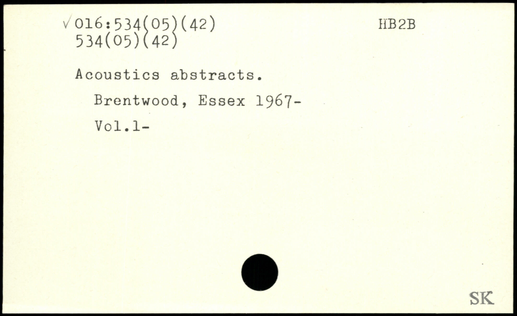 Acoustics abstracts. Brentwood, Essex 1967-Vol.l-