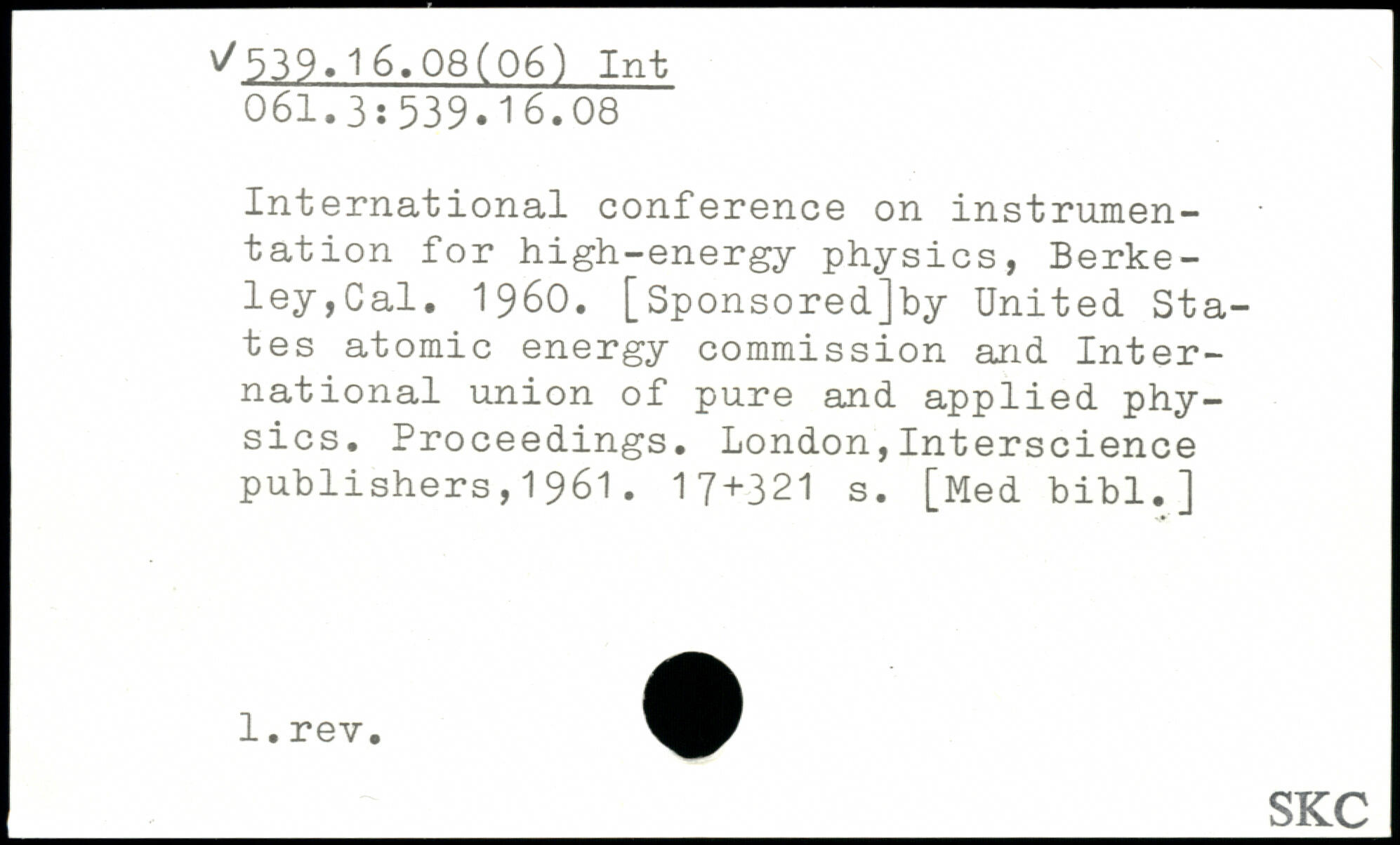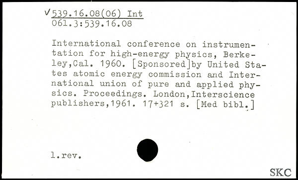 International conference on instrumentation for high-energy physics, Berkeley,Cal. 1960. [Sponsoredjby United States atomic energy commission and International union of pure and applied physics. Proceedings.