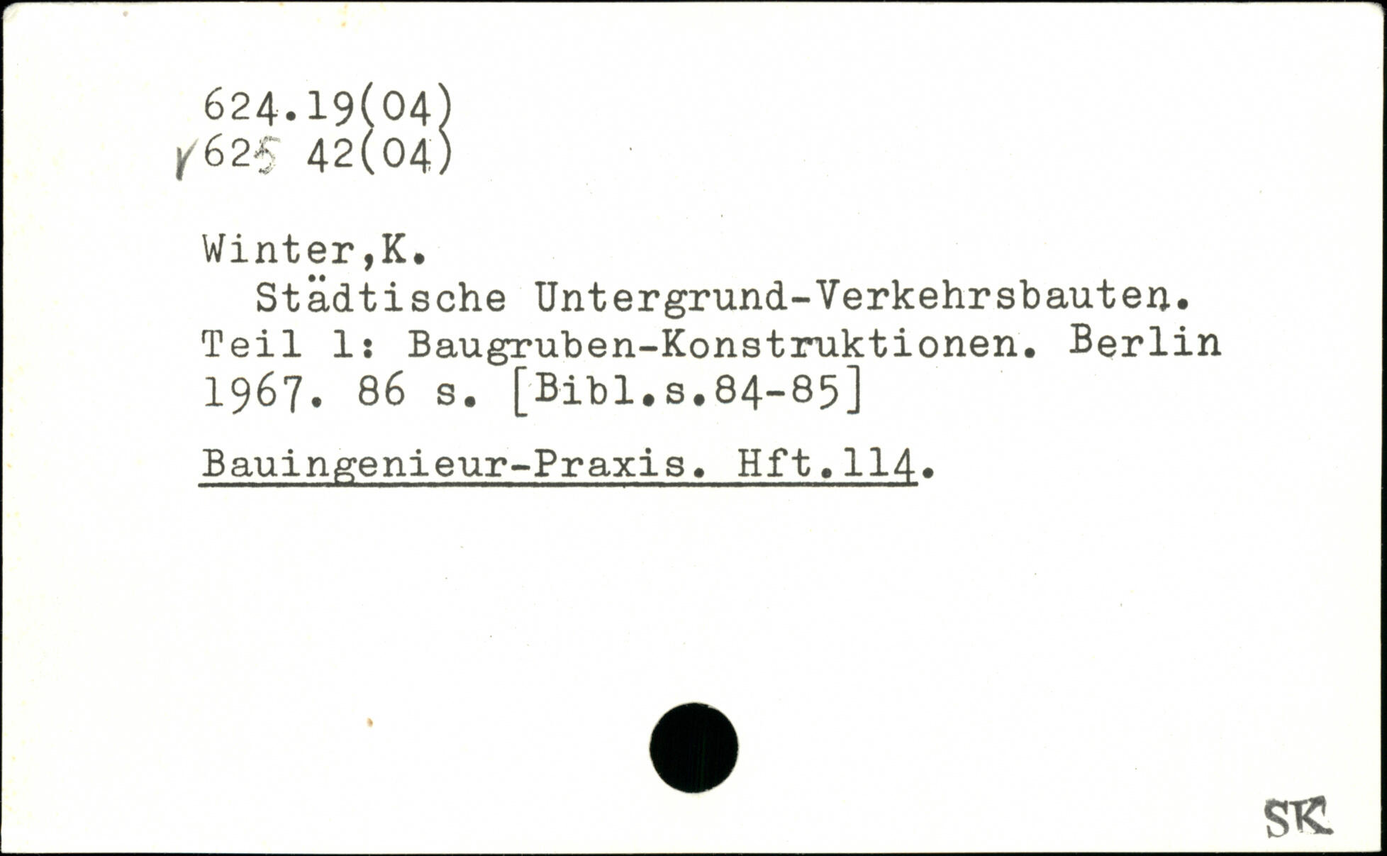 Städtische Untergrund-Verkehrsbauten. Teil 1: Baugruben-Konstruktionen.