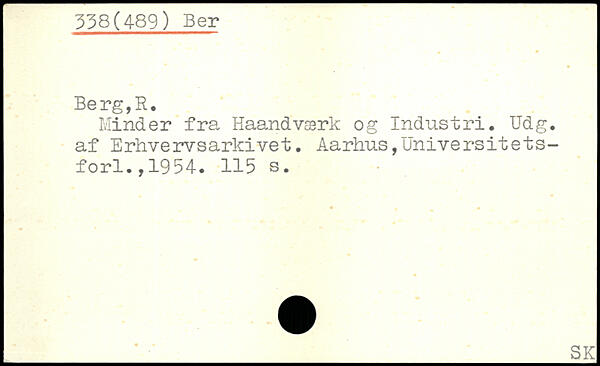 Minder fra Haandværk og Industri. Udg. af Erhvervsarkivet.