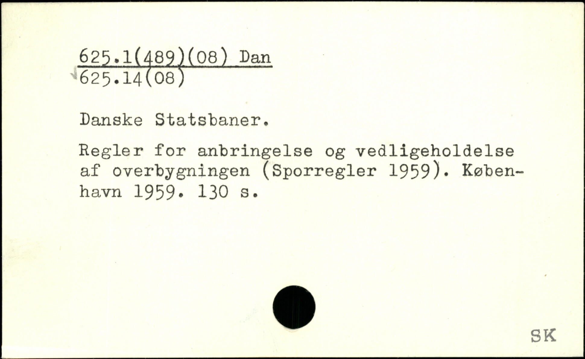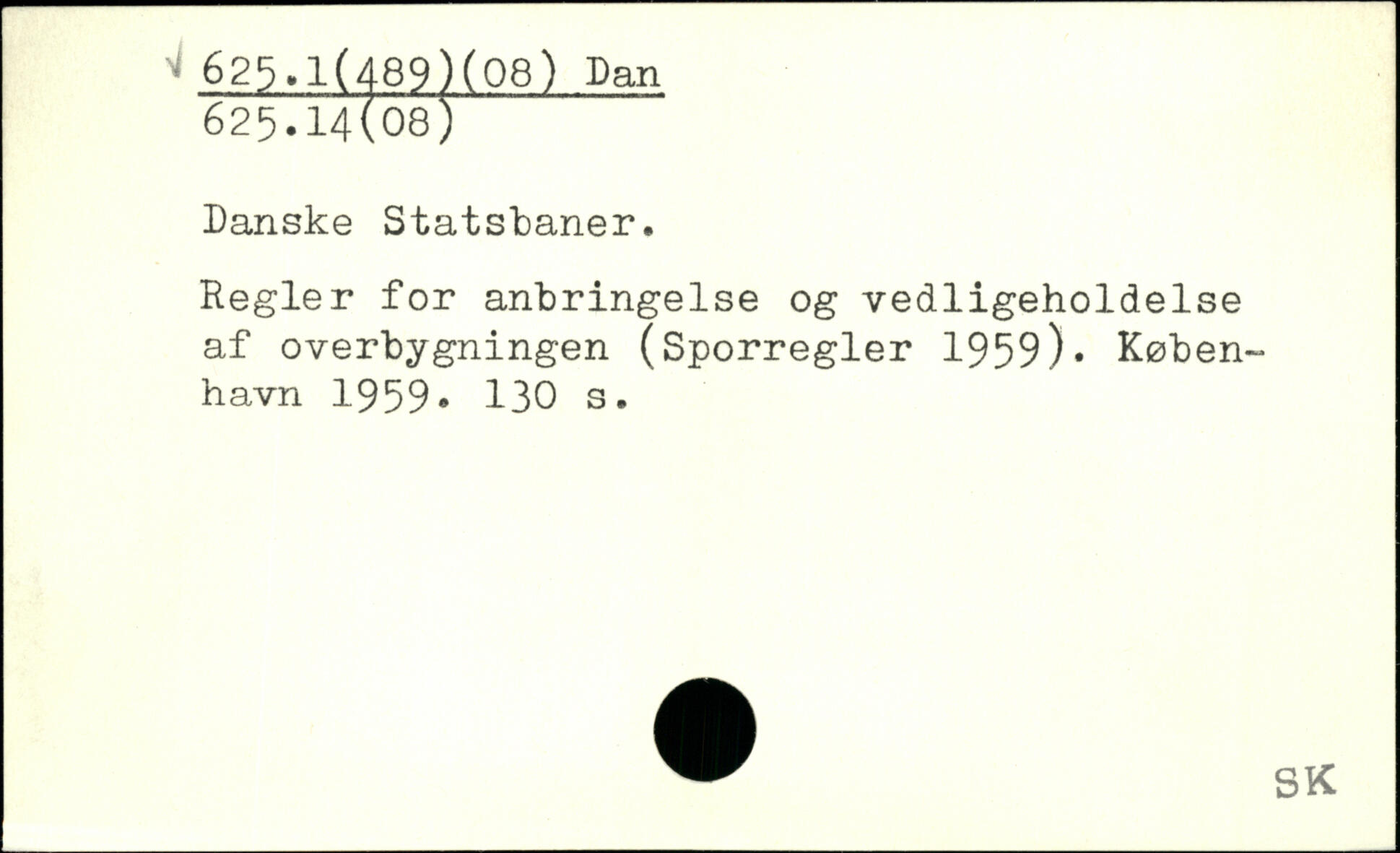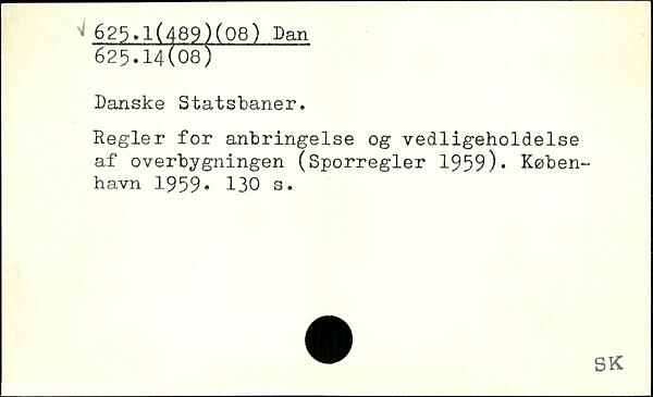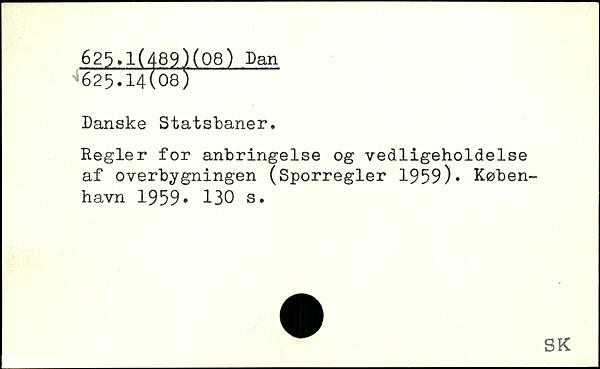 Danske Statsbaner. Regler for anbringelse og vedligeholdelse af overbygningen (Sporregler 1959).